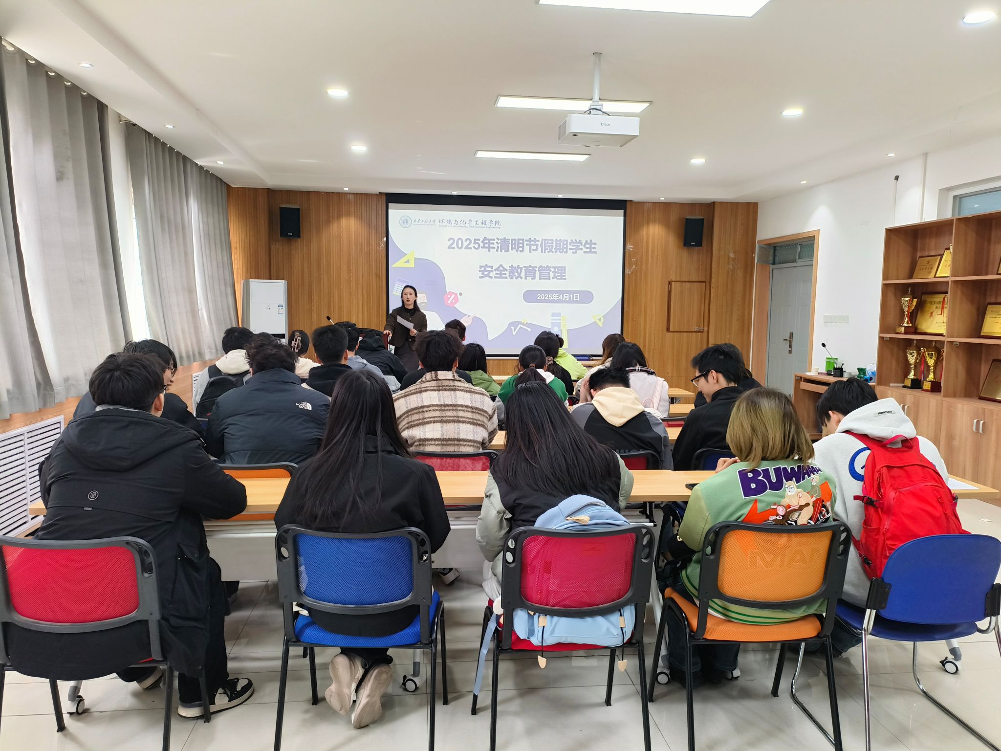 随后,任子瑜对假期安全管理工作作出具体安排。一是要文明祭扫、安全出行,严禁野外用火,各班委和员工党员要带头倡导绿色祭祀方式,切实强化消防安全意识。二是要求员工严格执行离校请假制度,各班委需精准掌握本班同学假期去向,做好出行信息登记与动态跟踪。三是各班要做好春季传染病防护,出现发热等症状要及时就医并上报。四是要求各班委重点关注学业困难、心理问题等特殊员工群体,建立帮扶机制。五是要求员工干部加强宿舍安全检查,重点排查违规电器等安全隐患,共同维护安全整洁的住宿环境。