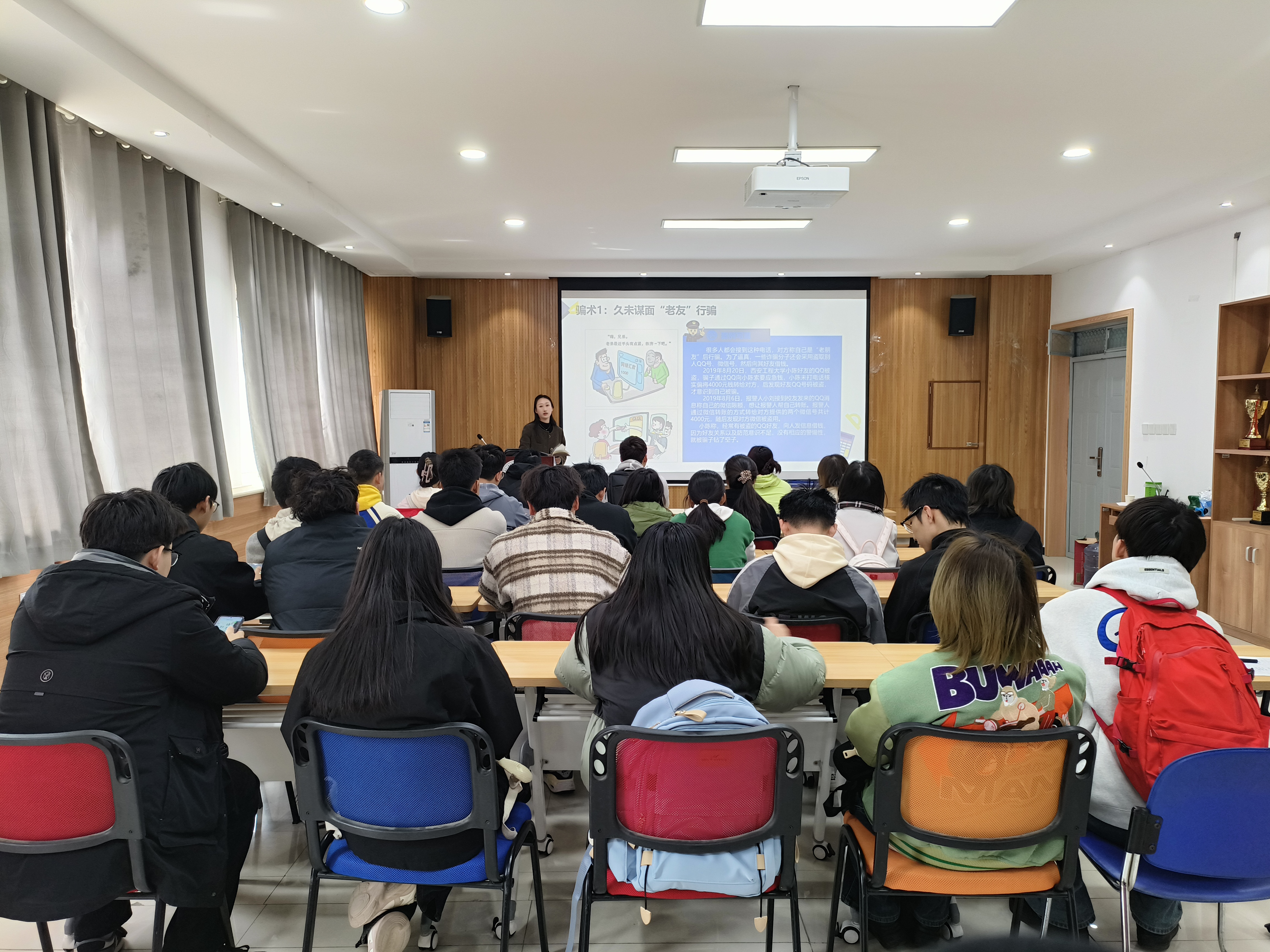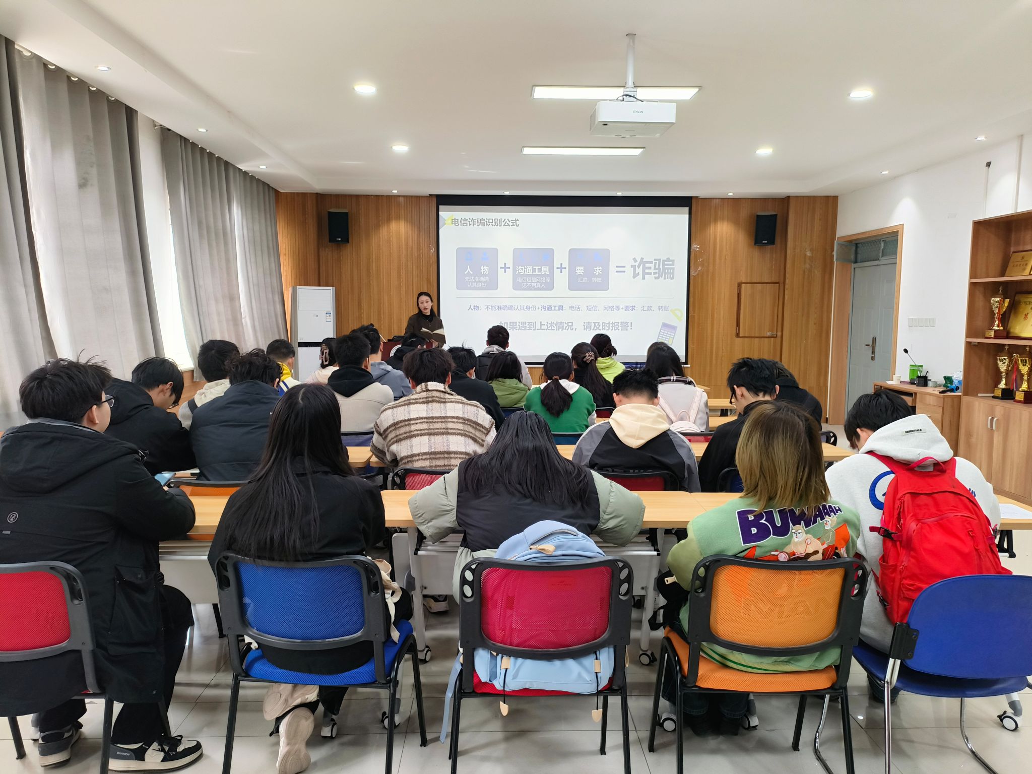 会上,任子瑜首先结合斜口派出所反诈专题教育要求,通过“刷单返利”“虚假中奖”等典型案例深入剖析了当前常见的电信诈骗手法,要求各班一周内召开反诈主题班会,增强反诈意识和提升反诈能力。