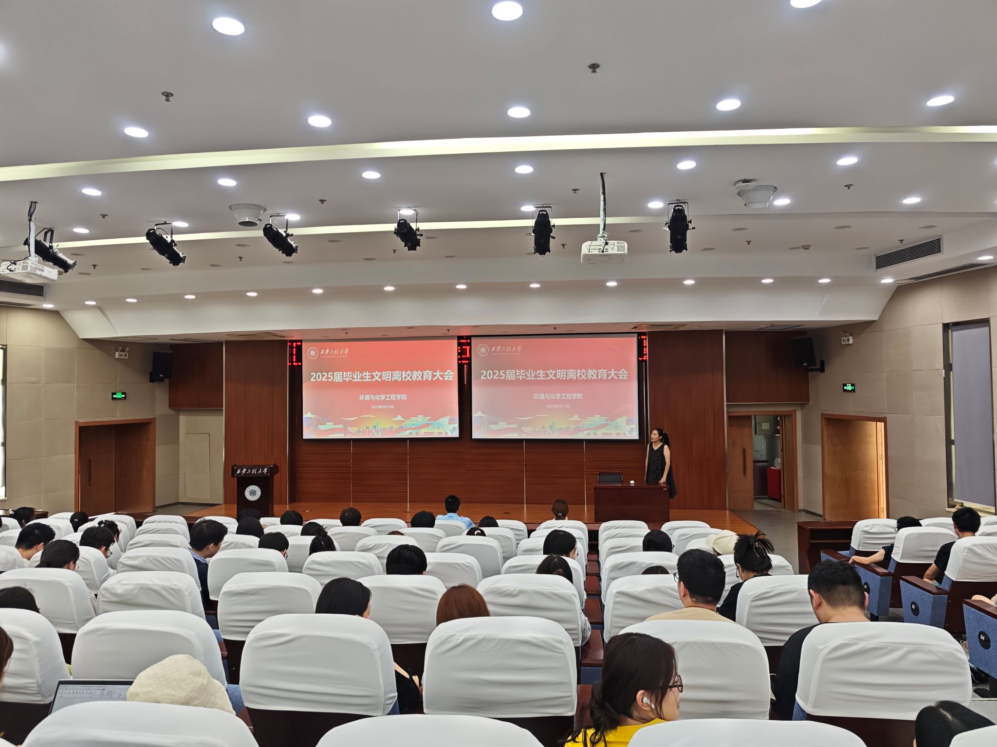 本次大会不仅为毕业生顺利、有序离校提供了清晰指引和有力保障,更是一堂生动的毕业前思政教育课。大会为全体2025届环化学子的老员工活画上温暖而庄重的句号,也为他们扬帆起航、奔赴广阔天地注入了信心与力量。