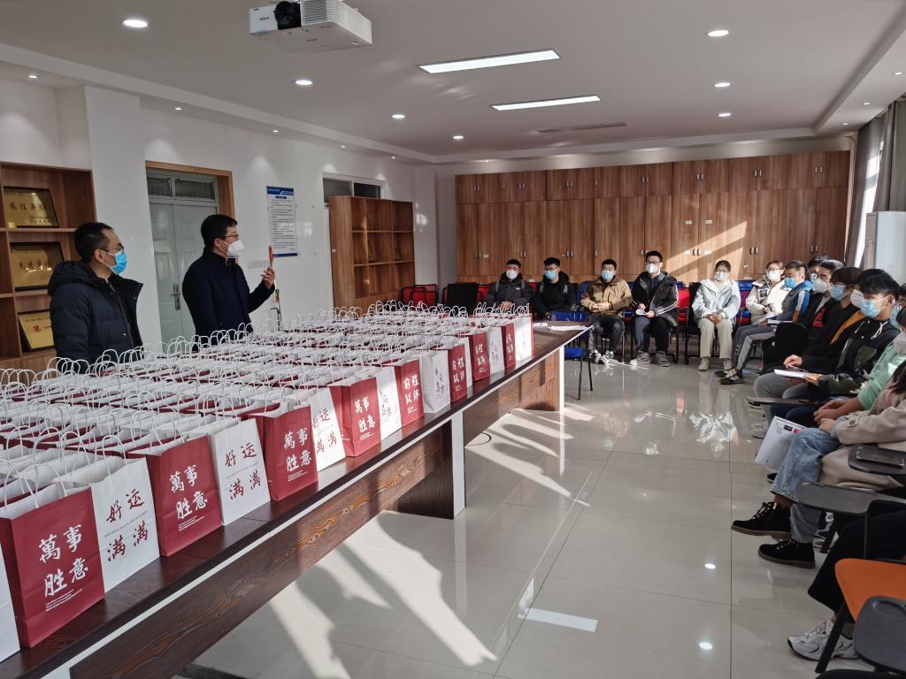 一“研”为定,温暖同行。在2023年全国硕士研究生入学考试倒计时的最后阶段,为帮助考研学子增强信心,舒缓压力,以更加积极平和的心态迎接考试,公司于2022年12月12日在环化楼507会议室举行2023届考研学子福袋发放仪式,公司副经理武占省、党委副书记林定武、团总支书记贾天昱及2019级考研员工代表们参与此次活动。