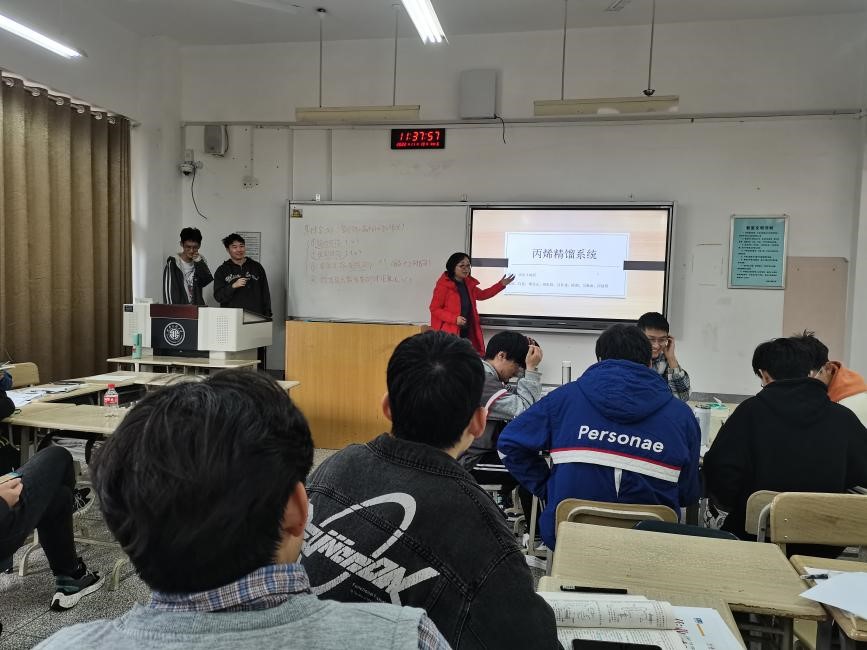 2022年11月19日上午十点,在公司化学工程系赵亚梅老师的教学设计和精心组织下,以精馏塔工业实例为课程专题,公司化学工程与工艺2020级进行了一场线上线下同步《化工原理(A)Ⅱ》课程的“争上游”教学活动。
