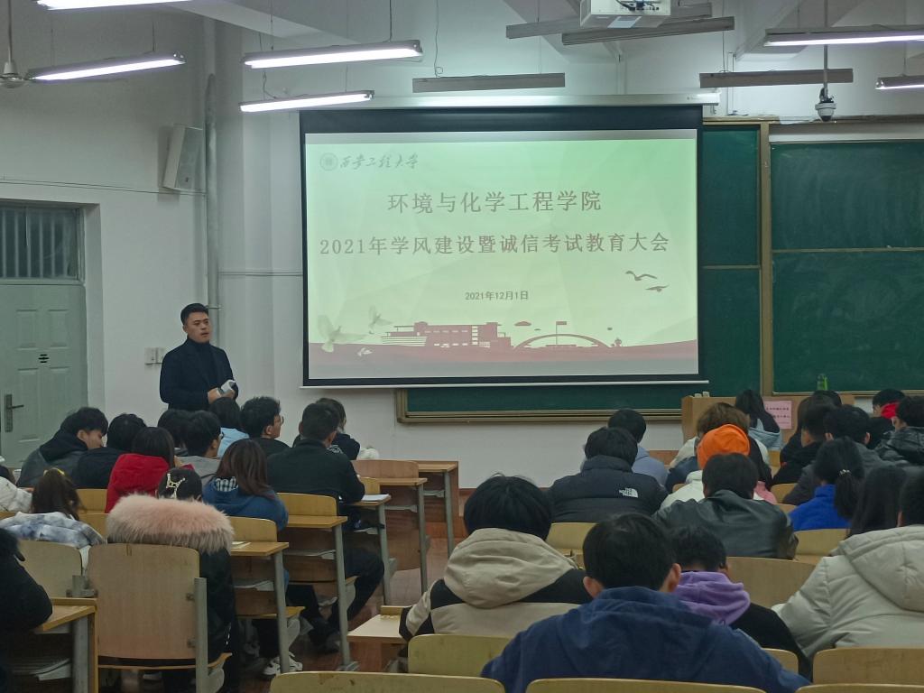 为加强学风建设,树立良好的考风、考纪,环境与化学工程院于12月1日在B-233举办2021年学风建设暨诚信考试教育大会,参与本次会议的有团总书记贾天昱、团学组织部长及以上、全体班委成员,大会由贾天昱主持。