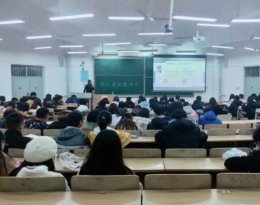 为加强公司学风建设,倡导诚信考试 ,公司于12月19号在B座教学楼133教室召开学风建设宣讲会及考风考纪动员。会议由2019级辅导员刘梦雅主持。