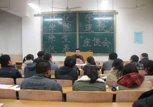 环化公司于2011年11月21日19:35-20:30在D-296教室成功召开关于学风建设的员工代表座谈会,林定武老师主持会议,10、11级各班员工代表参加会议。