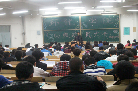 2011年11月02日晚上7:00,在B栋133教室举行了环化公司四级考试动员大会,林定武老师主持会议, 10级全体同学参加了本次会议。