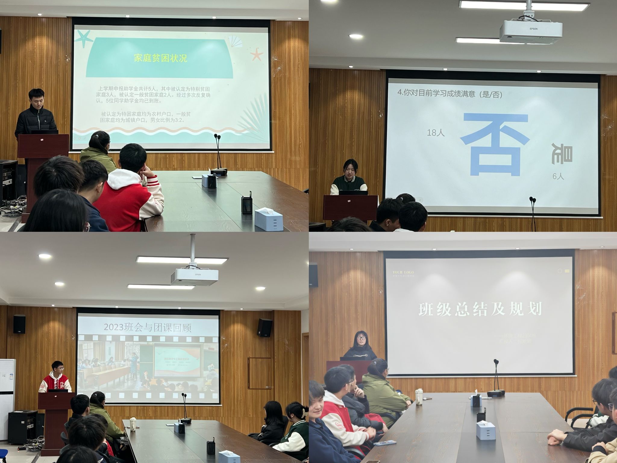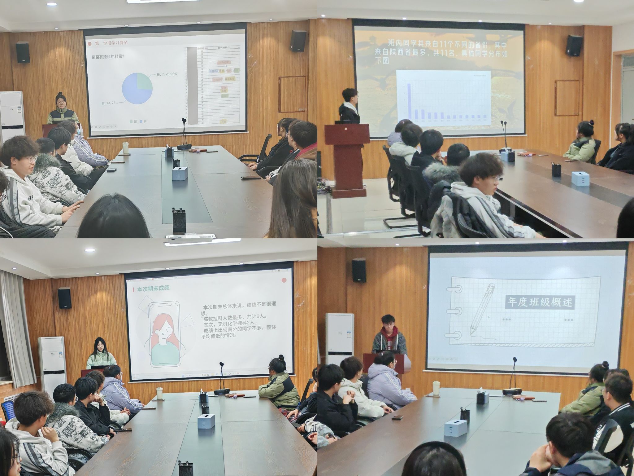 会上,应用化学、生物工程、环境工程、化学工程与工艺四个专业10个班级依次上台,从思想作风建设、学风建设、班级制度建设、凝聚力建设、资助工作等方面详细地汇报了班级的阶段性成果。各班以从严从实的态度,系统梳理工作,通过调查问卷、深入交流的方式,广泛搜集同学们在学业、日常生活等方面的问题,分享了在班级管理中的心得体会,确立了新学期的工作目标。