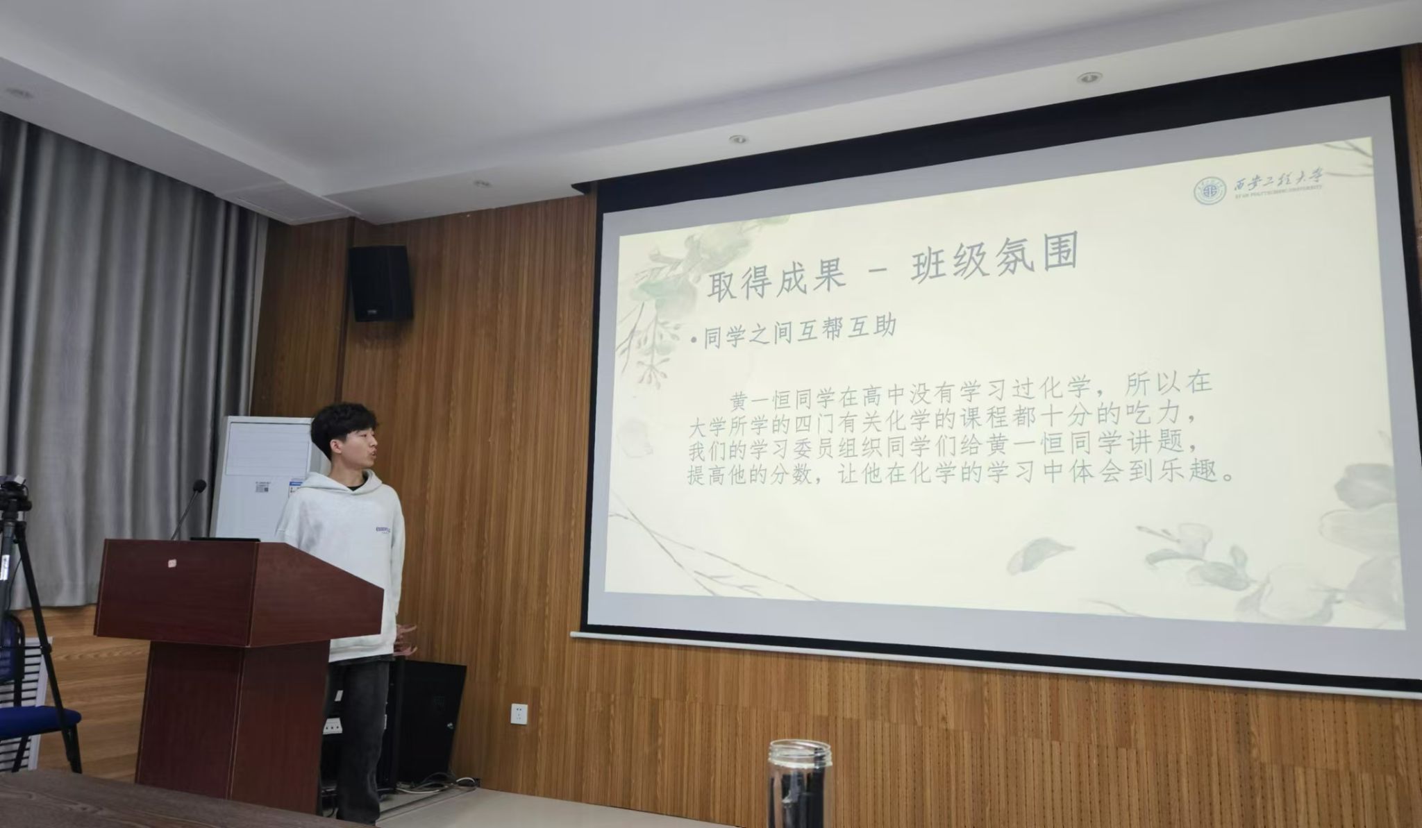 为进一步加强公司学风、班风建设,激发班级的凝聚力,10月17日晚,环化公司“优良学风示范班”风采展示在环化楼507会议室举行。公司辅导员张易泽及各班班长团支书到场参加。