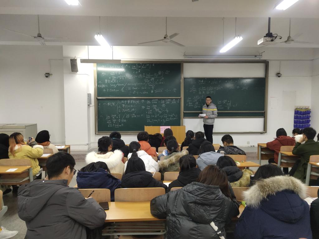 在晚自习时间,获得国家助学金并且成绩优异的大二大三员工利用晚自习时间到教室为大一同学讲解高等数学,同学们做题中遇到的问题也可以进行询问。学长学姐耐心讲解,同学们认真听讲。