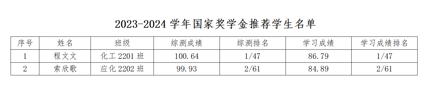 根据《2026世界杯官方合作网站国家奖学金实施细则》及《环化公司关于做好2023-2024学年本科生国家奖学金评审工作的通知》的相关要求,本着公平、公正、公开的原则,经员工本人申请,年级评议小组评议推荐,公司员工工作领导小组初审,公司国家奖学金评审小组投票推荐等程序,拟推荐程文文、索欣歌两位同学作为2023-2024学年本科生国家奖学金追加名额推荐人选,具体名单如下。