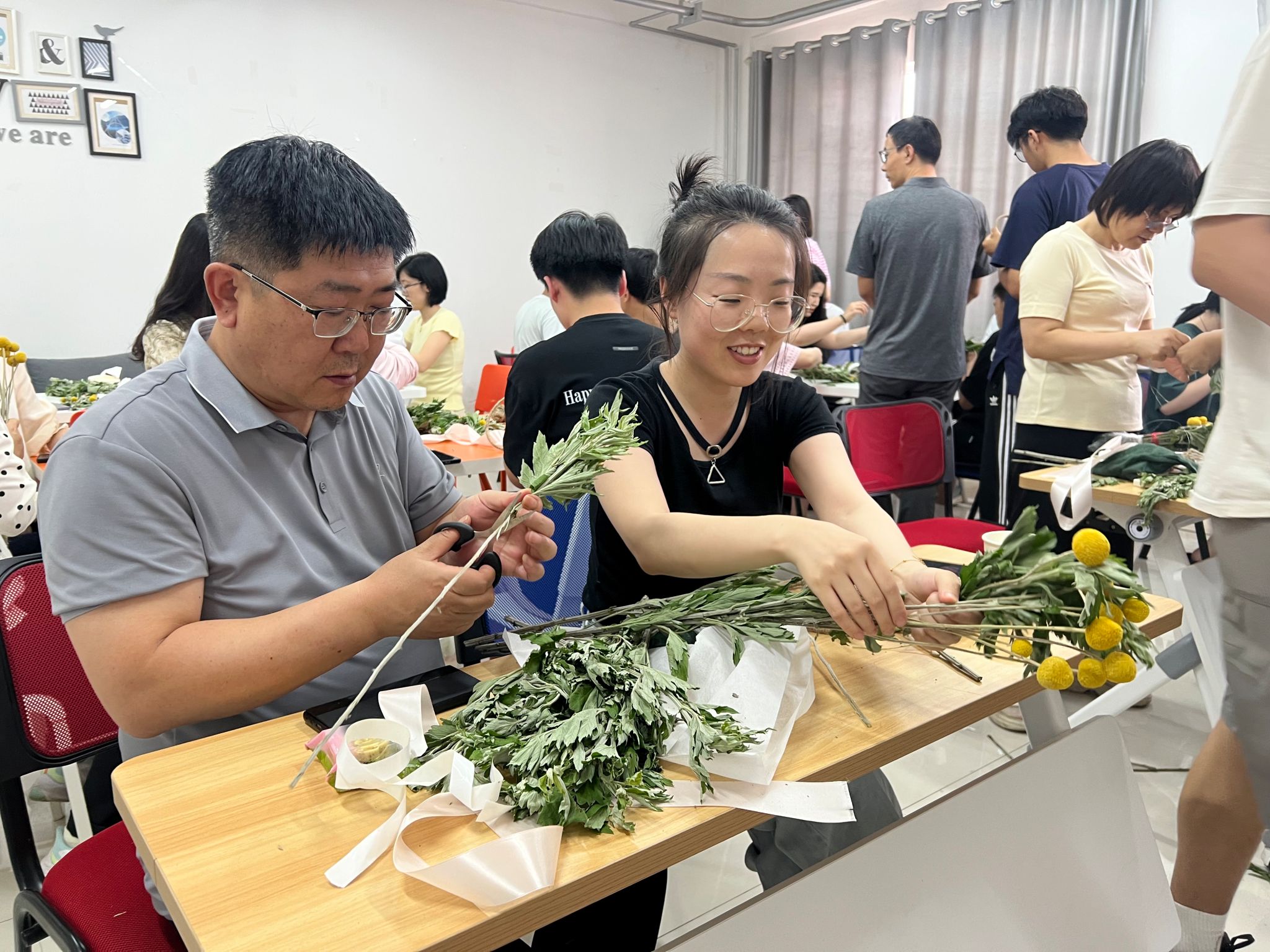 5月27日,公司在六号楼“一站式”员工社区举办了“助学成环,艾育芬芳”艾草花环手作活动,四十余名师生齐聚一堂,在一针一线间传承端午文化,在互帮互助中感受资助育人的温暖力量。