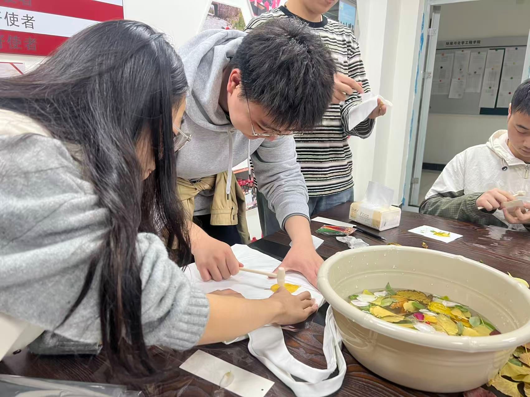活动前期,手工小导师毛姗妮同学精心筹备,提前收集校园内形态各异的银杏叶、梧桐叶等落叶及花瓣,并准备了书签、拓印工具、颜料等材料,为同学们营造了沉浸式的手工创作环境。