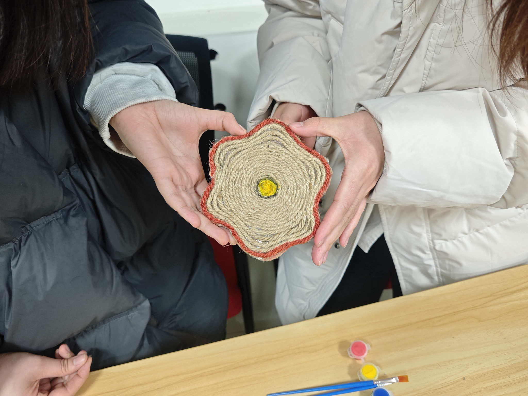 11月28日,公司“化蝶”手工坊在“一站式”员工社区成功举办“绳奇改造家”废弃物创意手工活动,活动吸引众多同学参与,一同感受废旧物品“变身”实用艺术品的创作乐趣。