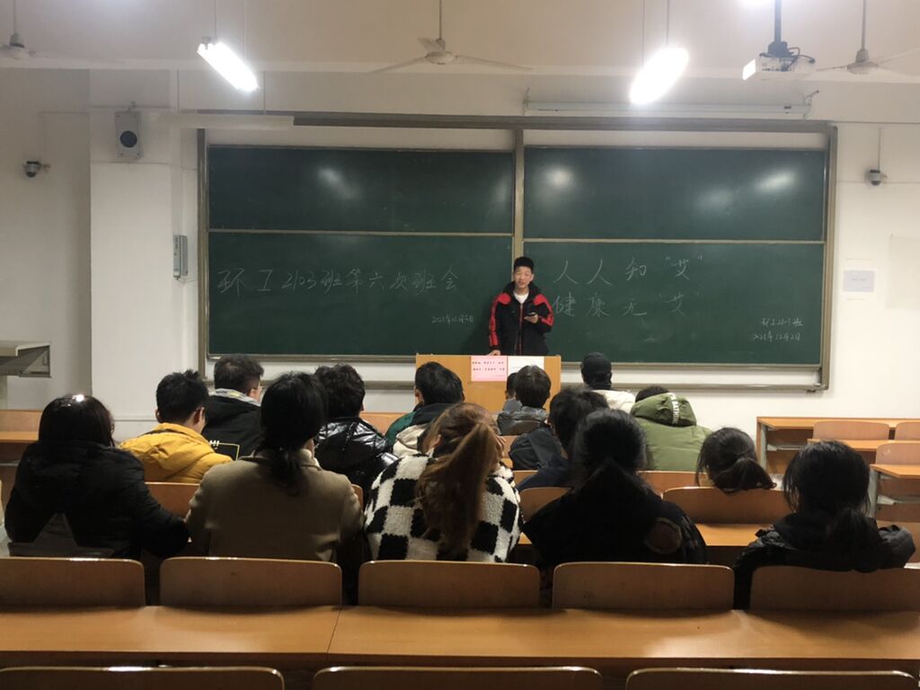 各班采取主题班会的形式开展预防艾滋病宣传及普及活动,用健康教育与德育育人的相互渗透的方式来帮助同学们了解艾滋病的危害、传播途径及临床表现。各位班委在班会中首先阐述艾滋病流行态势及对人类危害的普遍性、长期性及毁灭性,随后要求同学们明确预防洁身自爱、拒绝毒品、增强自我防护能力的三大原则。最后,呼吁同学们对于艾滋病患者做到不歧视、不恐惧,勇敢去拥抱艾滋病患者。