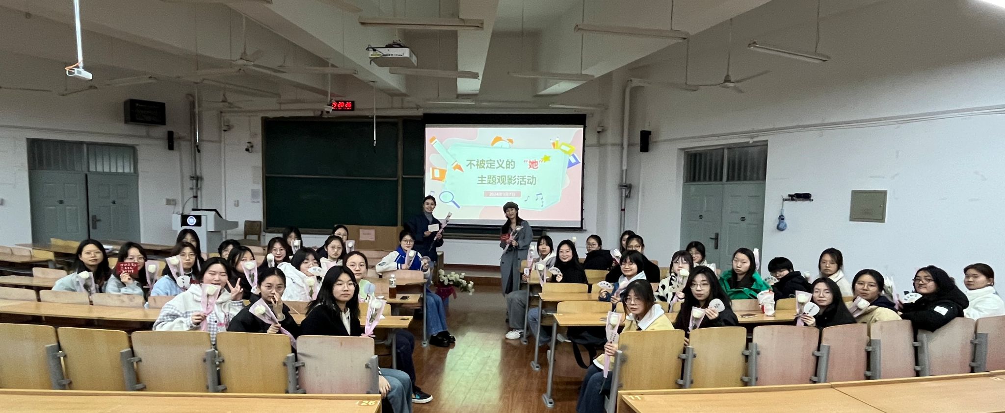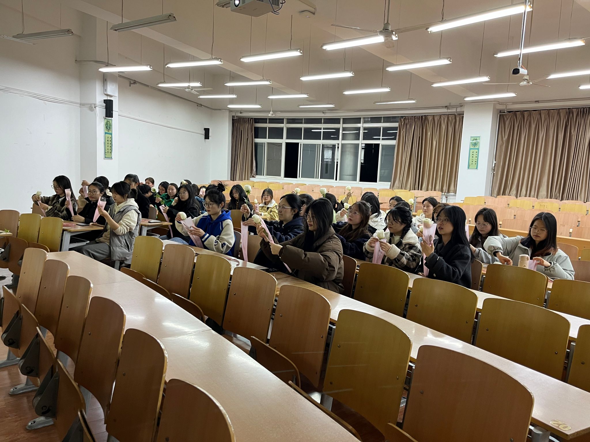 为提升广大女生的心理健康素质,培养女生自信、自尊、自爱、自立的良好品质,公司于2024年3月7日晚上在B栋教学楼333教室召开了“不被定义的‘她’”心理健康主题观影活动,观看影片《被嫌弃的松子一生》。22级、23级部分女生参加,辅导员任子瑜、盖潇宇带领大家一起包装花束,并为各位女生们送上了暖心的卡片和祝福。