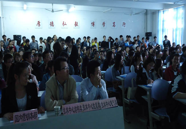 在金花校区就业指导中心召开“志高空调”招聘宣讲会,教室内外挤满了前来应聘的员工。邓安哲员工为广大同学做了招聘宣讲,同时介绍了自己毕业后的发展情况,希望能够和学经理期对接,促进校企双方共同发展。希望将来能有更多优秀毕业生到志高集团工作。