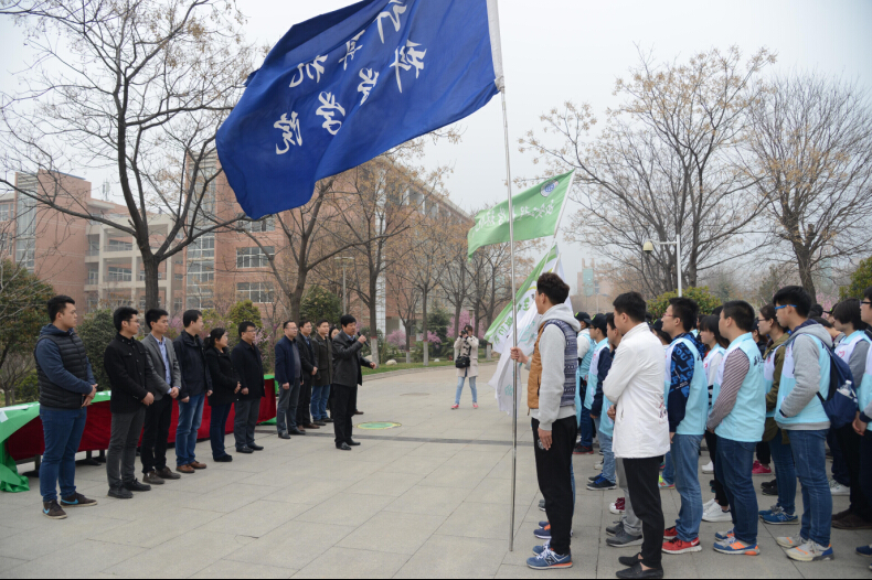 与会领导与志愿者们共同发出倡议:爱护环境、爱护校园从我做起,我要为校园生态文明尽份心做件事。随后李博飞与同学们对校园植物进行了挂牌,计算机科学公司辅导员朱成功对挂牌的植物进行了讲解。