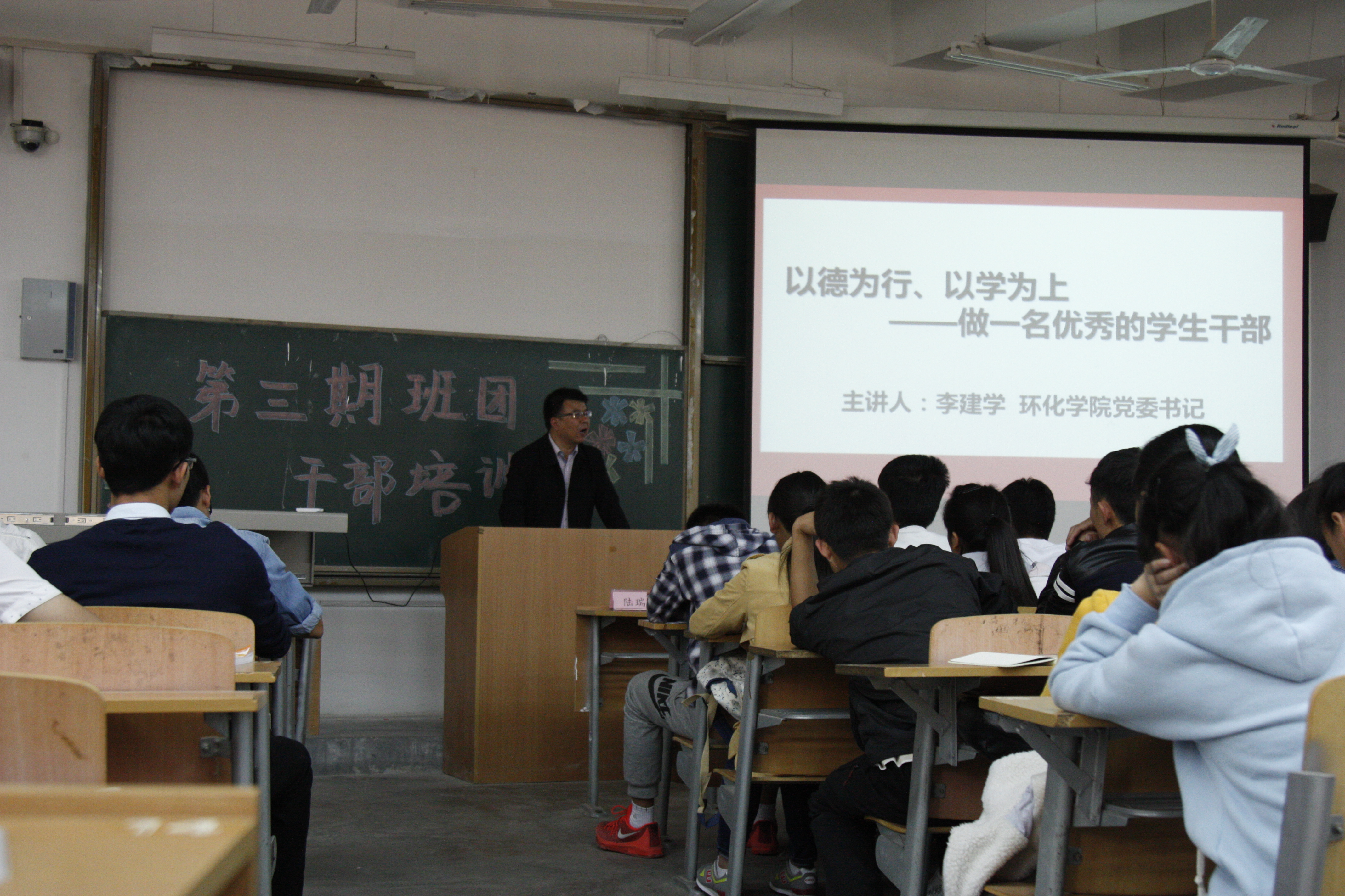 开班典礼后,李建学书记做了第一讲题为“以德为行、以学为上——做一名优秀员工干部”的专题报告,李书记从员工干部在人才培养中的作用、员工第二课堂教育、员工干部应培养的能力和素质等方面谈了如何加强干部培养工作。
