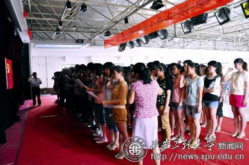 09级应用化学专业康茹茹同学代表新党员发言,她感谢母校老师的培养,感谢组织的教育,将珍惜党员的称号,在人生新的征程中,努力工作,奋发向上,为母校增光,谱写精彩的青春华章。