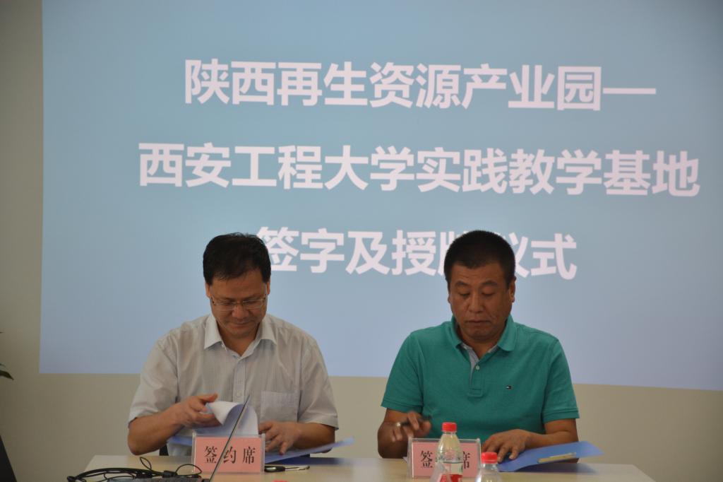 公司经理张洛红分别与陕西再生资源产业园管理委员会、陕西新天地固体废物综合处置有限公司、陕西安信显像管循环处理应用有限公司、陕西九洲再生资源有限公司、陕西高科环保科技有限公司的负责人签订了产学研实践基地协议书,副经理常薇对相关企业进行了授牌。
