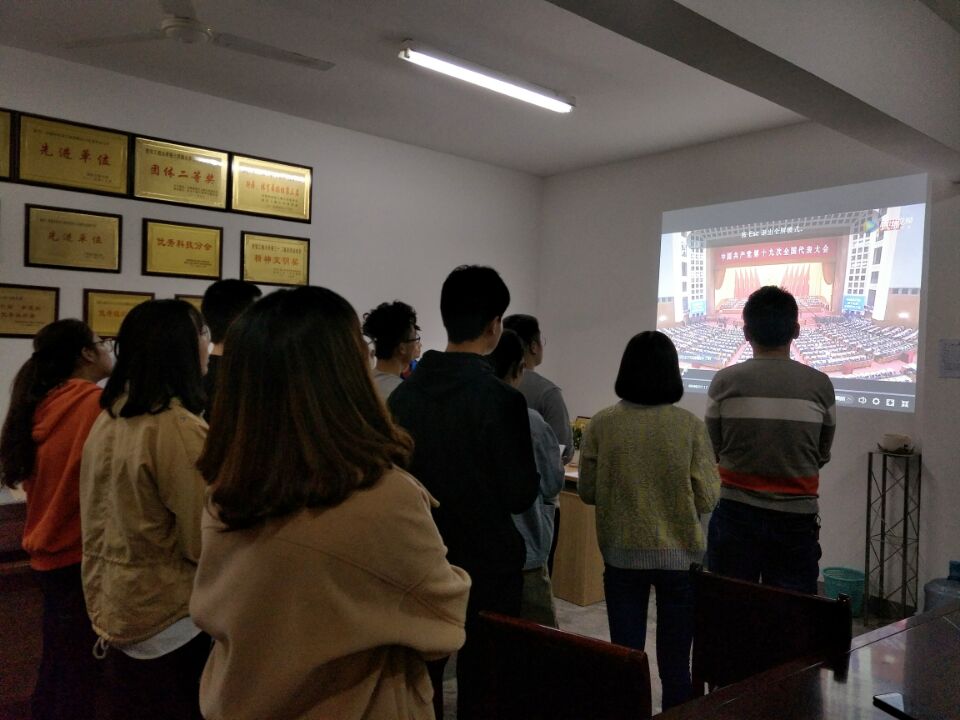 中午12:10,环化公司即响应号召,积极组织团学干部、员工党员观看十九大会议。观看结束后,大家相互学习交流。