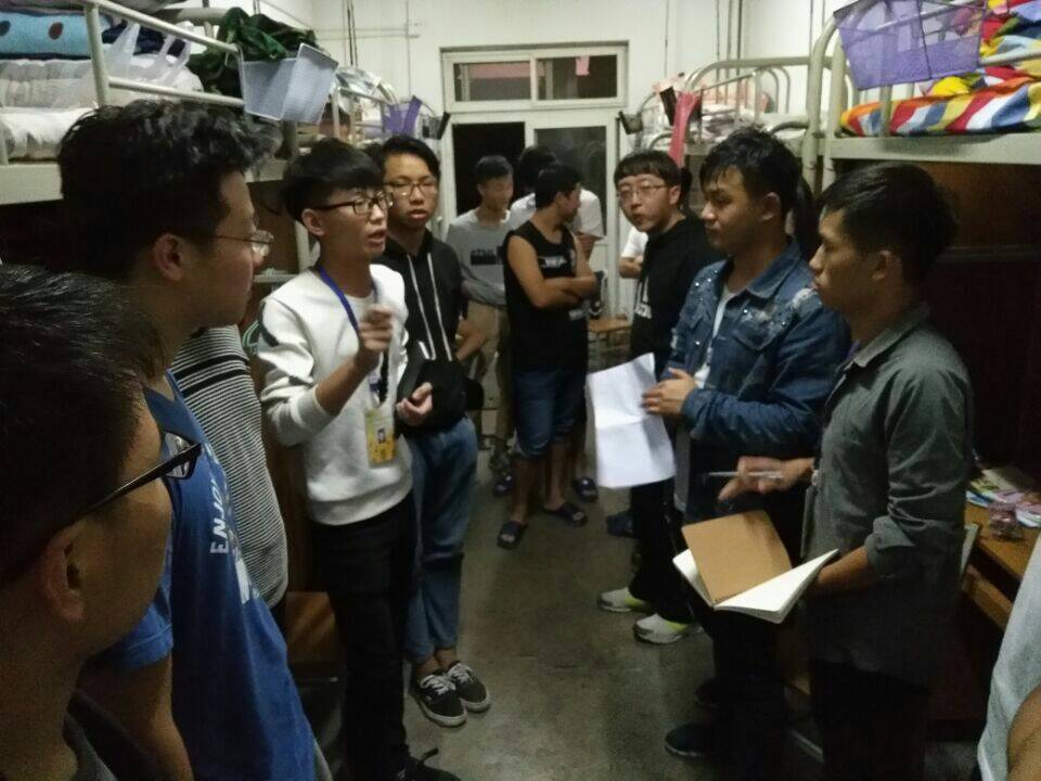 9月1日晚,在老师的走访工作结束后,公司团学科员工干部本着“自我教育自我管理自我服务”的宗旨走进新生宿舍。员工干部们细心地了解宿舍存在的问题,察看宿舍的设施是否完善,然后上报有关部门争取尽早解决新生宿舍存在的问题,帮助他们熟悉并尽快适应新的环境。