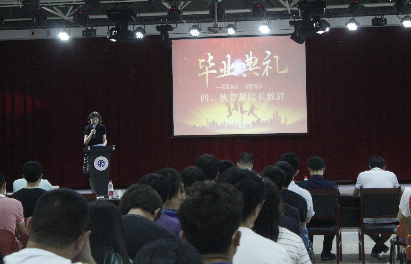 公司经理狄育慧教授在致辞中,建议大家拥有事业心、恒心、感恩心,并给大家殷切的希望和美好的祝福。教师代表王雪艳老师希望同学们可以摆正自己的位置,始终不断学习。毕业生代表胡世雨同学表现出对母校的不舍及对所有老师的感谢。公司党总支书记李建学老师宣读了2017届优秀毕业生、优秀毕业生干部名单,并由李建学书记等出席典礼的老师为获奖员工颁发证书。