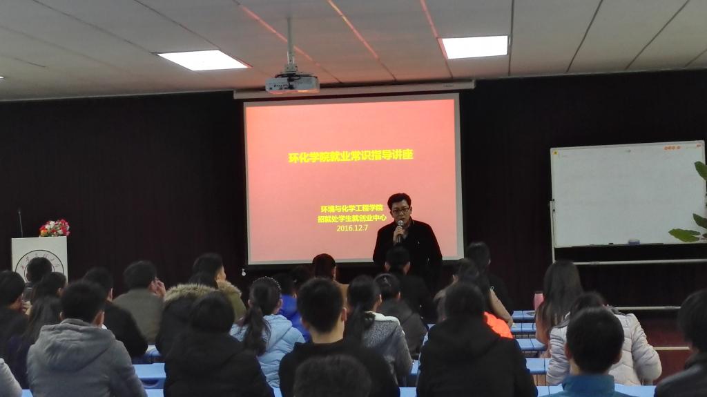 2016年12月7日下午16时,环化公司举办“就业常识指导讲座”。本次讲座由校就业创业指导服务中心主任赵文熙和副主任刘佳主讲。参加本次讲座的有环化公司14、15、16级创业就业委员及个人简历制作大赛参赛同学,本次活动由14级辅导员陆瑞成主持。