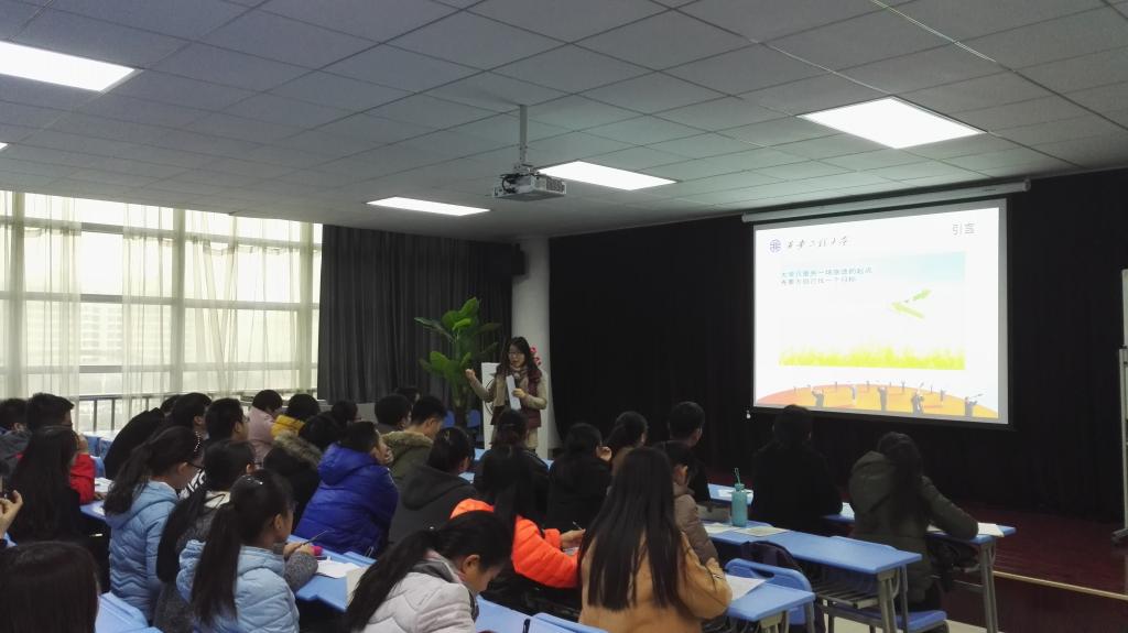 刘佳从就业创业委员的职能与员工职业生涯进行了讲解。刘老师告诫广大同学作为终会面对社会的老员工,提早将自己的角色定位为职场人,明确自己的目标,同时对就业委员提出了几点建议:在班级充分发挥就业委员的职责,积极开展以职业生涯规划为主题的班会;每学期对班级同学适合的职业等进行测试;组织模拟职场上无领导小组讨论面试等相关活动。