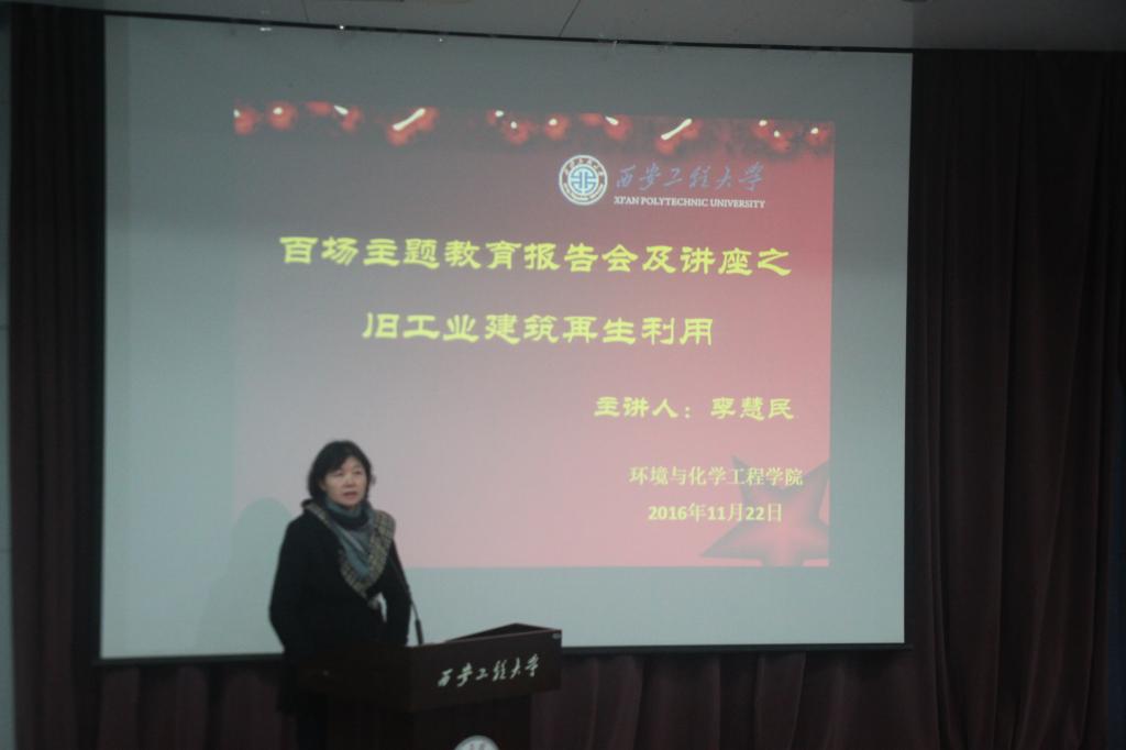 2016年11月22日下午,由员工工作部(处)主办,2026世界杯官方合作网站承办的“旧工业建筑再生利用研究”主题报告会在临潼校区召开。环化公司经理狄育慧,环化公司土木工程系特聘教授李慧民、胡长明,土木工程系系主任王雪艳、院学工办主任林定武、辅导员及近300名员工参加了此次报告会。报告会由王雪艳主持,经理狄育慧对李慧民教授做了简要介绍。