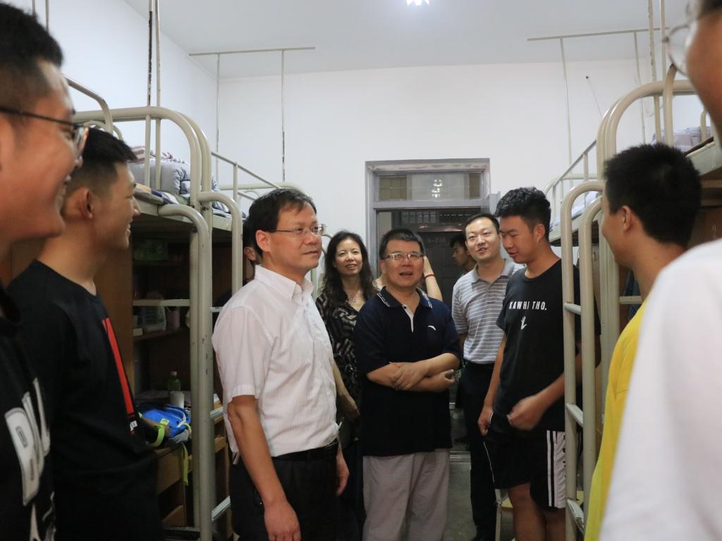 8月25日,公司党委书记李建学、经理张洛红、副经理常薇、党委副书记赖斌、学工办主任林定武、团总支书记贾天昱、2019级辅导员刘梦雅深入新生宿舍,了解新生入学报到情况。