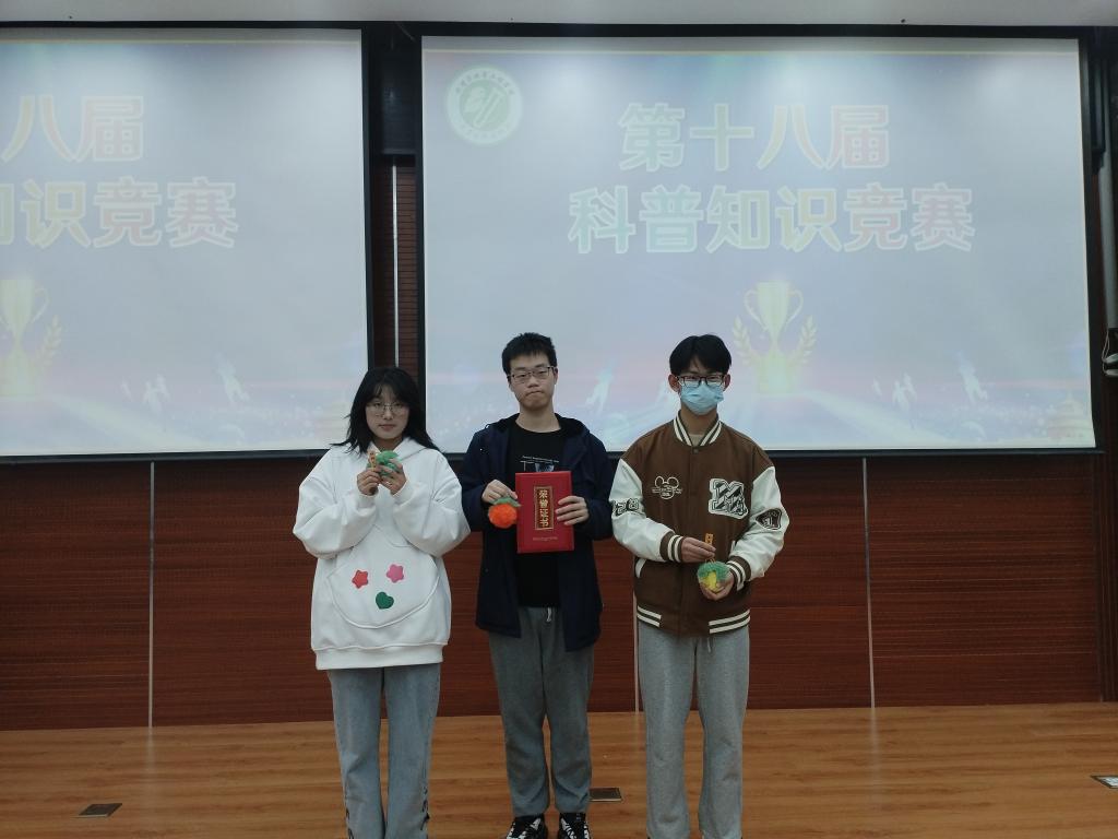 本次大赛趣味性、科普性与竞技性并重,分为势在必得、同舟共济、头脑王者三个环节。第一环节势在必得主要考验队员们对基础科学知识的了解情况,台上选手们沉稳作答,观众们掌声不断。第二环节同舟共济需要队员们相互配合“你画我猜”,极大地提高了比赛的趣味性。第三环节头脑王者比拼各参赛队伍的知识储备,现场争夺异常激烈,赛场氛围达到最高。最终,化工2302班、环工2302班和化工2301班代表队分别获得本次大赛的第一、二、三等奖。