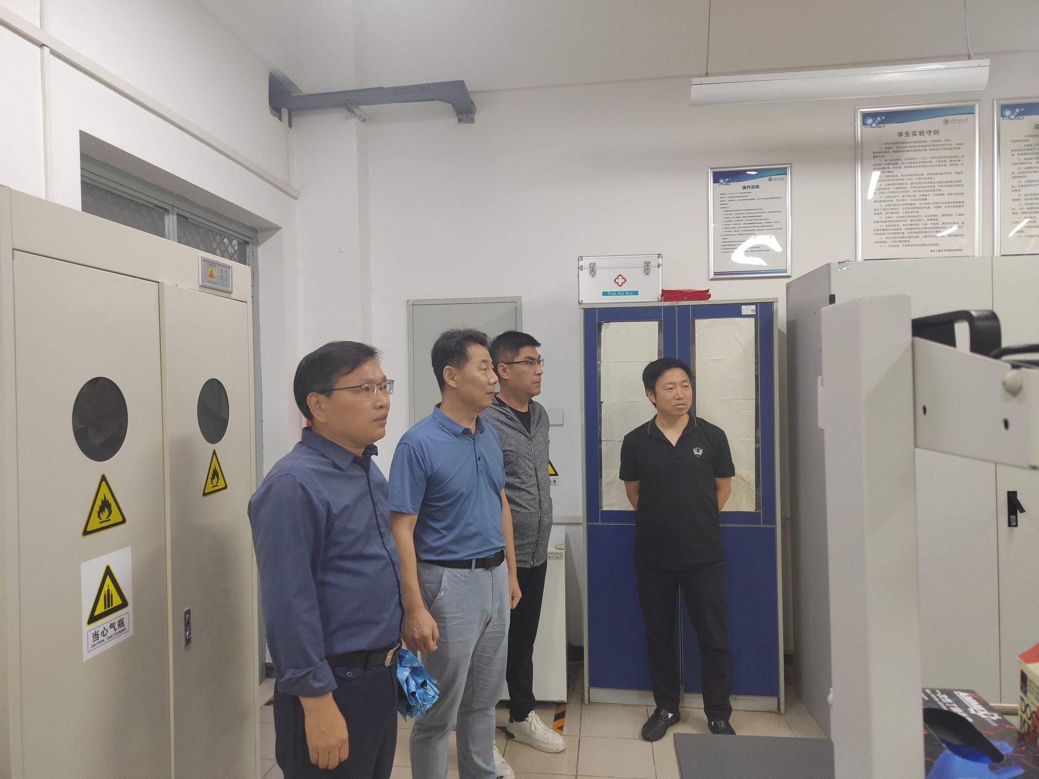环化公司的实验室安全是公司的重要工作之一,通过安全检查,不断督促管理人员和员工加强实验室、研究生工作室的安全管理,严格危化品和易燃易爆品的管控,加强实验设备仪器的操作规范培训和室内场所的用电用水安全教育,强化安全责任意识,为全院师生创造安全良好的教学科研环境。