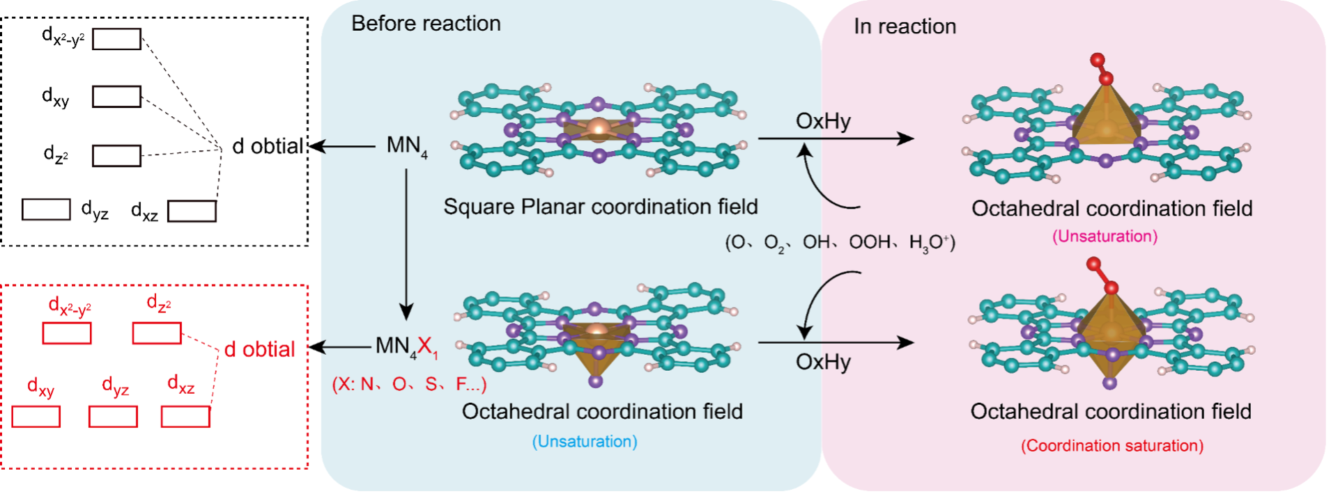 近日,公司武占省教授团队在国际知名期刊Chemical Engineering Journal(SCI一区,IF=15.1)上发表题为“Tuning the coordination field configuration on well-definedmolecular catalysts for boosting bifunctional oxygenelectrocatalytic”的研究型文章。作者通过一种非热解策略在铁基共轭酞菁框架(Fe-CPF)上构建轴向配位,得到具有明确Fe-N5活性中心的双功能氧电催化剂。实验研究和理论计算表明,轴向相互作用可使局部晶体场和自旋极化变化,即由中自旋态的平面配位(Fe-N4SP)向低自旋态的准八面体配位(Fe-N5OCquasi)转变。dz2、dxz和dyz轨道中自旋向上和自旋向下的电子数趋于一致,自旋极化的局域对称性可以使含氧反应中间体产生适中的吸附/解吸能,从而增强了本征反应活性。结果表明Fe-CPF@Ip-RGO表现出了优异的双功能氧催化活性(ΔE[Ej10-E1/2] = 0.567 V),超过了基准Pt/C-IrO2。这项工作为通过调控金属活性中心的d-轨道能级分裂形式用于提高氧电催化性能提供了新的理解。