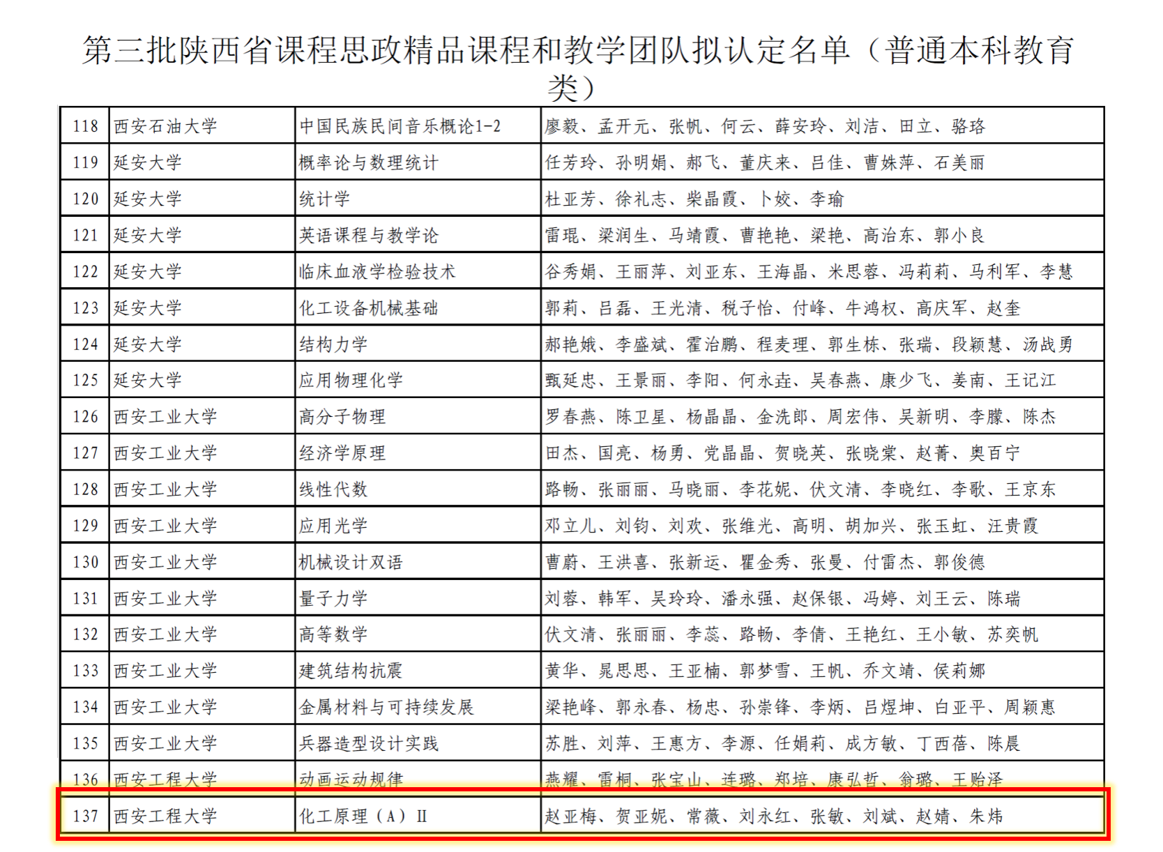近日,陕西省教育厅公布了“第三批陕西省课程思政精品课程和教学团队拟认定名单”。公司赵亚梅教授团队讲授的《化工原理(A)II》课程成功获批陕西省课程思政精品课程。这是公司首个获批的省级课程思政示范项目,标志着公司课程思政建设工作迈上了新台阶。