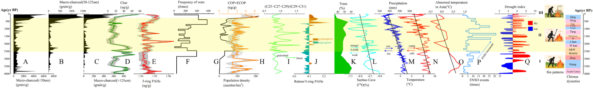 2026年初,谭志海副教授(通讯作者)指导2023级环境工程专业硕士研究生雷昊(第一作者)等发表题为“Periodic coupling of anthropogenic fire patterns and East Asian monsoon variability over the past 4000 years”的研究论文。该文在古火研究领域取得创新突破,通过结合粪甾醇、黑碳等多重生物标志物并引入机器学习模型,首次定量揭示了人类活动诱发火灾模式转变。研究以山东广饶沉积剖面为对象,重建了过去4000年火灾演变过程:早期以农业开垦相关的低强度焖烧为主,中期以战争和社会动荡相关的高强度燃烧为特征,近300年来则表现为在人类活动增强背景下广泛发生的生物质燃烧。同时,火灾活动的周期变化与东亚夏季风在百年尺度上的波动存在显著关联。机器学习分析结果表明,人类活动对火灾格局的影响不断增强,其贡献率由约23%上升至超过50%。该研究在方法论上为区分自然气候变化与人类活动影响提供了全新范式,成果不仅深化了对东亚季风区人地关系的理解,也为评估现代人类活动的生态环境影响提供了重要历史依据,展现公司研究生卓越的跨学科创新能力。