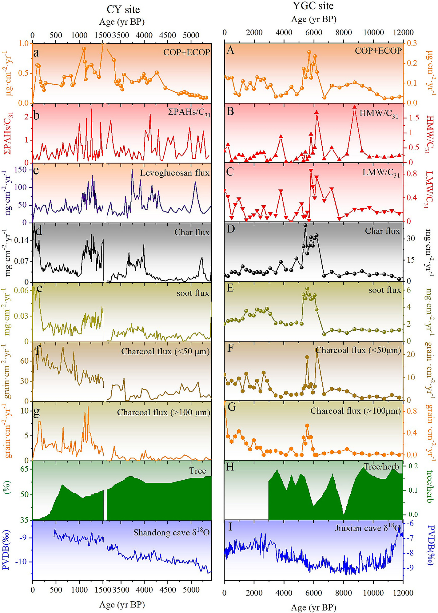 Fig.1陕西杨官村和山东昌邑剖面火与气候古生态指标对比分析