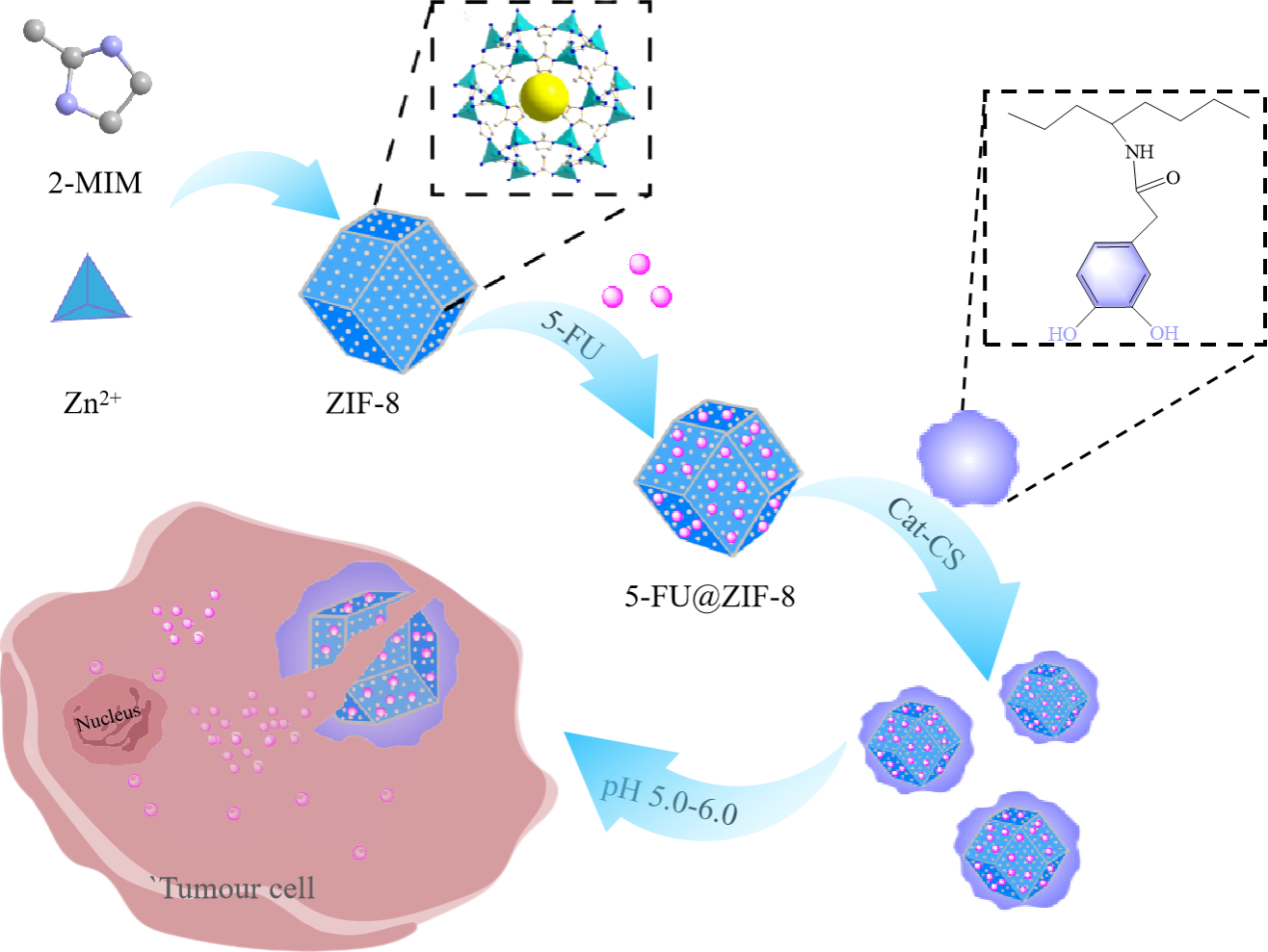 图2仿贻贝纳米ZIF-8纳米MOFs药物载体的设计