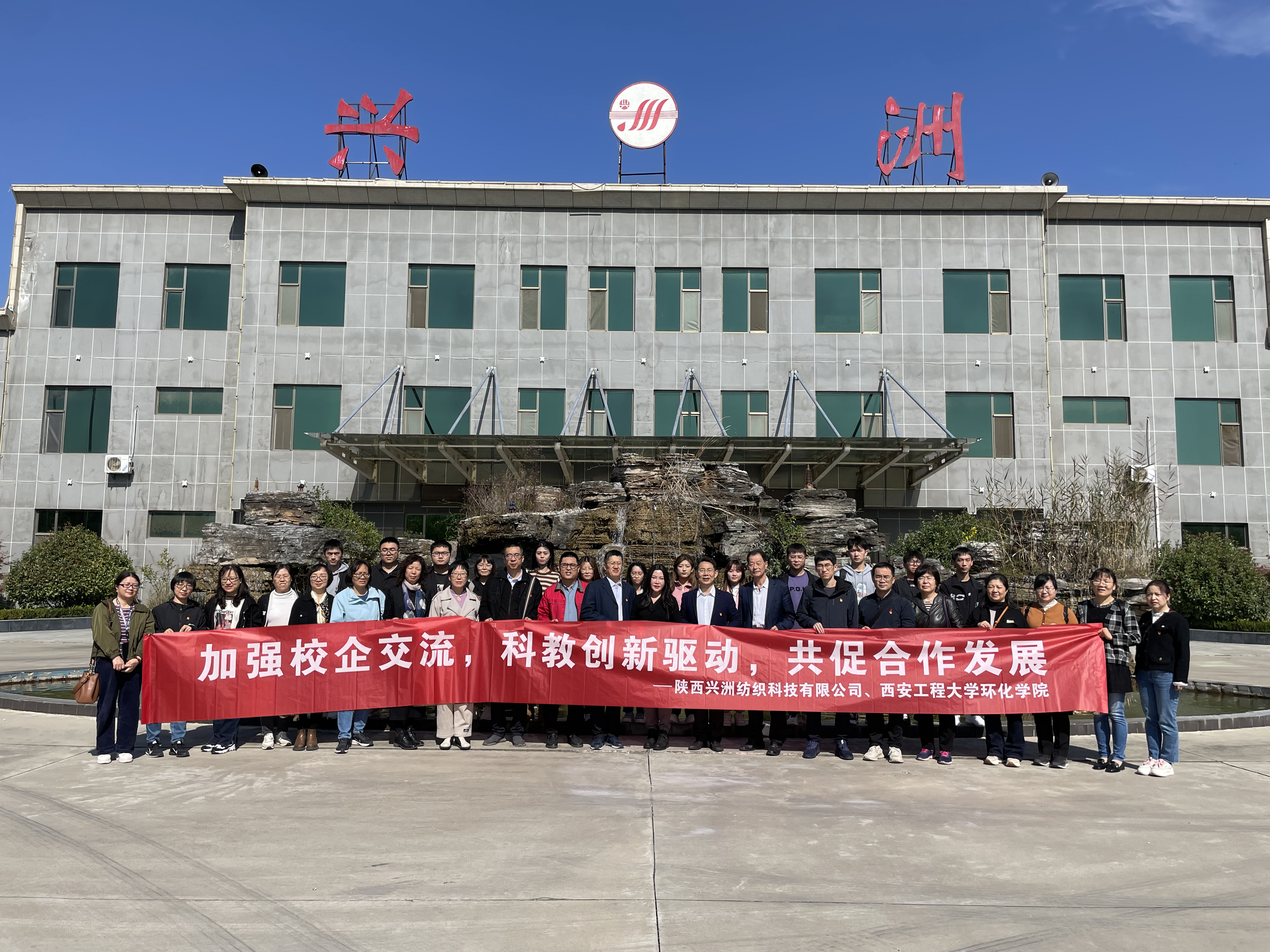 胡西民书记、武占省主持工作副经理一行参观了该公司的面料展厅、印染生产车间以及污水处理厂等企业运营场所,听取了陕西兴洲纺织科技有限公司的发展理念和经验介绍,详细了解了企业发展、生产经营、人才需求等情况。实地参观后,公司一行与陕西兴洲纺织科技有限公司杨总经理就人才培养培训、科技创新、员工就业创业、深化校企合作等方面进行深入交流,收到了良好的效果。