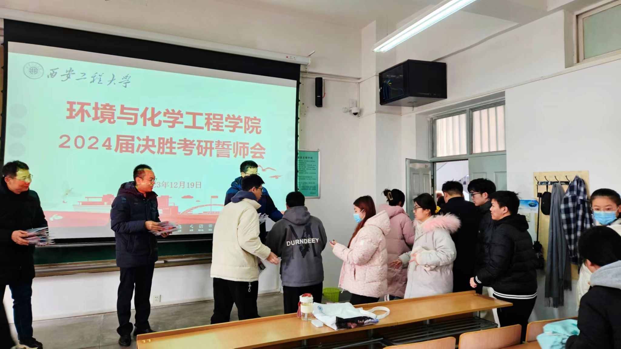 “研”途有你,未来可期。在2024年全国硕士研究生入学考试进入倒计时的最后阶段,为帮助考研学子增强信心,舒缓压力,以更加积极平和的心态迎接考试,公司于2023年12月19日在教学楼A-206举行2024届决胜考研誓师大会暨考研福袋发放仪式,公司党委书记胡西民、副经理(主持工作)武占省、副书记林定武、教务员耿倩、20级辅导员张易泽及2024届考研员工参与此次活动。