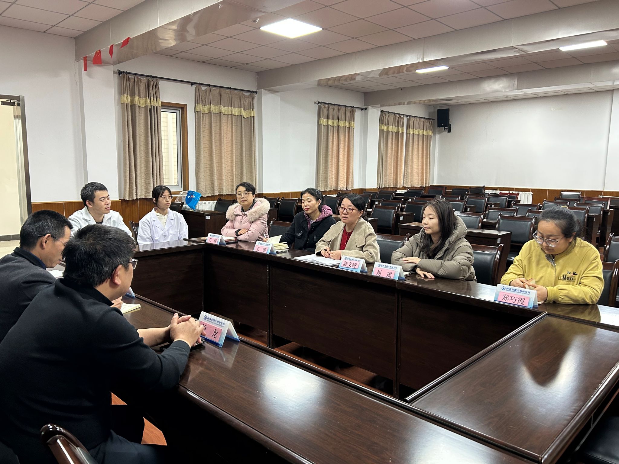 下午2时,同学们分为三组,分别由支部老师原龙、洪一楠、潘虹送至陕西省微生物研究所、中陕核分析测试有限公司和陕西省农业生态研究所三地。在陕西省微生物研究所,负责人王娜主任给16名实习生分配了实习指导老师。所长薛文娇代表所里的老师们热烈欢迎了实习的同学,并与所里带教老师、原龙老师和实习员工代表何丁能、李雨欣等进行座谈。
