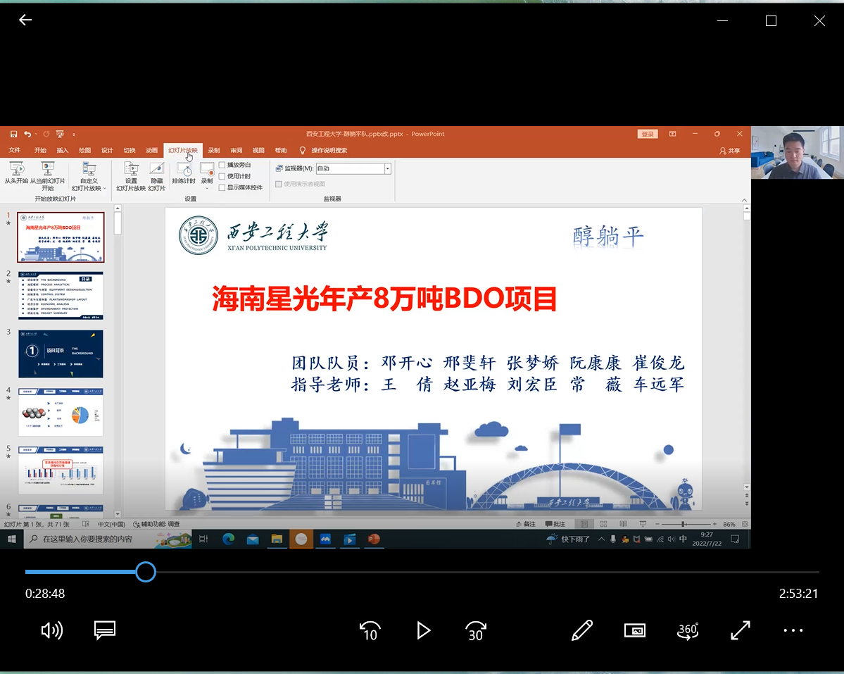 会议由环化公司常薇副经理主持,教务处刘呈坤副处长、全国老员工化工设计竞赛西北赛区竞赛委员会陈立宇秘书长和环化公司张洛红经理致词,环化公司胡西民书记出席此次比赛。通过5名校外专家评审,在赵亚梅、王倩、刘宏臣、常薇、车远军、霍锦华以及李亚楠老师的指导下,参赛队经过激烈角逐,由邓开心、邢斐轩、张梦娇、阮康康和崔俊龙组成的“醇躺平”队获得特等奖,由洪辰铭、狄世杰、陈丽、李琪和吕瑞展组成的“五等分的醇”队和由王耀伟、胡伟彬、李佳其、王永韬和张连帅组成的“醇狱”队获得一等奖。