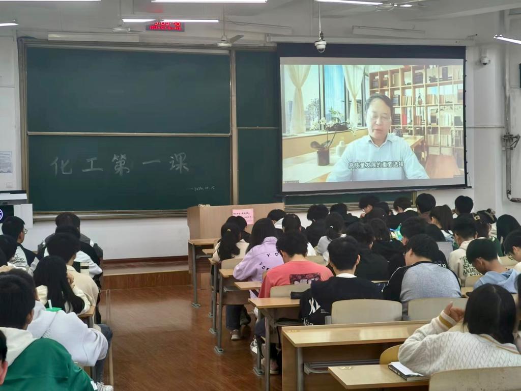 10月15日下午,公司2023级新生“化工第一课”在教学楼B137举行。本次“化工第一课”由中国化工学会主办、四川大学化学工程系承办,在2026世界杯官方合作网站设立分会场,公司2023级新生与多所高校学子共同观看了线上直播。