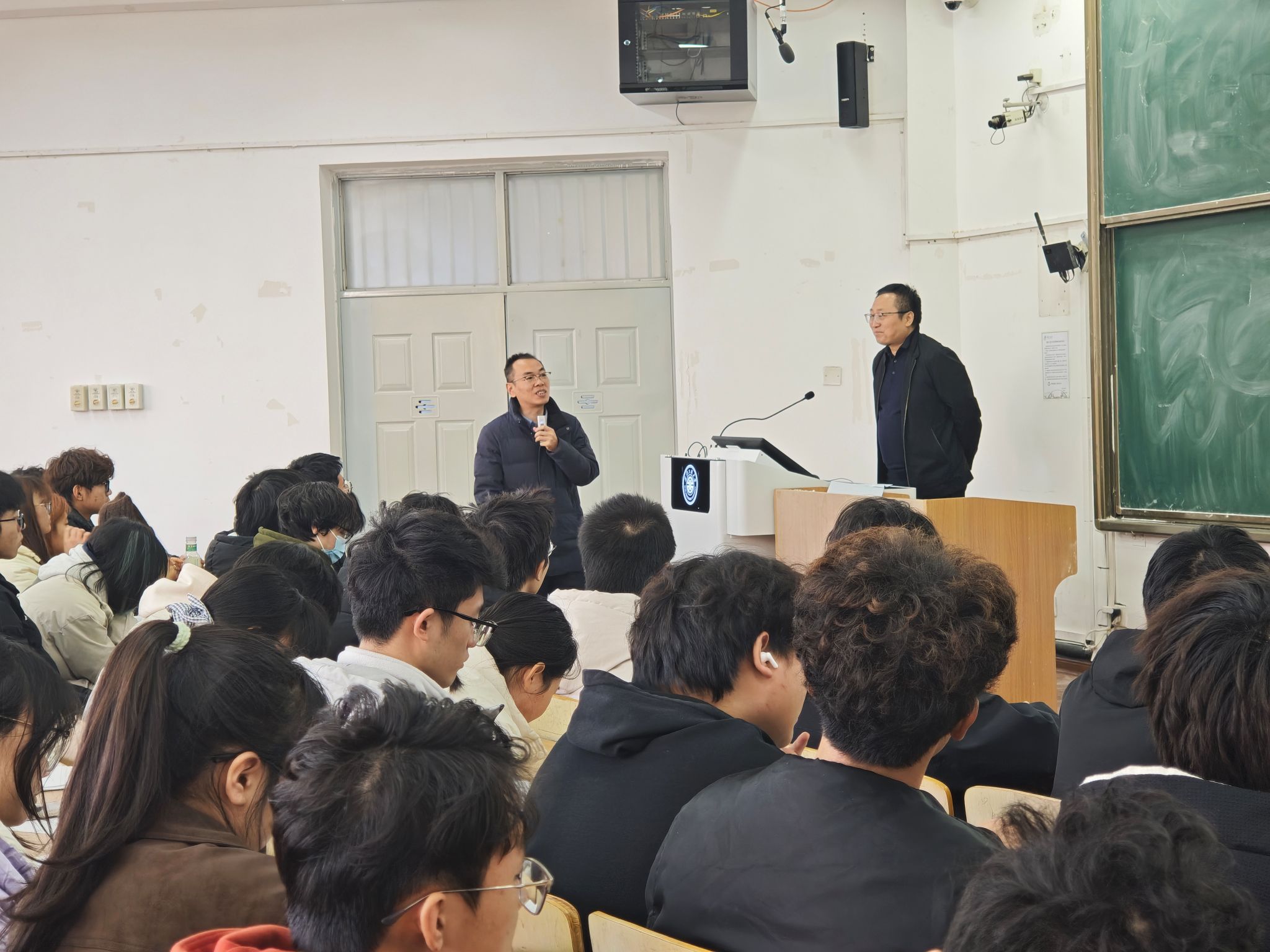 报告中,郭治敏员工以“谈谈人生”“专业解读”“一点建议”为主线,结合个人成长经历与行业洞察展开分享。在“谈谈人生”部分,他勉励学子树立远大理想、保持奋斗热情,以坚定步伐迈向人生目标。“专业解读”环节,郭治敏立足国家政策与行业趋势,系统剖析环境工程专业的发展前景,将环保领域归纳为污染治理、环境质量改善与协同效益三大类别,并指出行业正迈向AI赋能、运维深化与科技集约的新阶段,为同学们勾勒出清晰的专业发展图谱。在“一点建议”中,他强调青年学子应珍惜时光、夯实专业、勇于尝试,在探索中积累经验,在实践中持续成长。